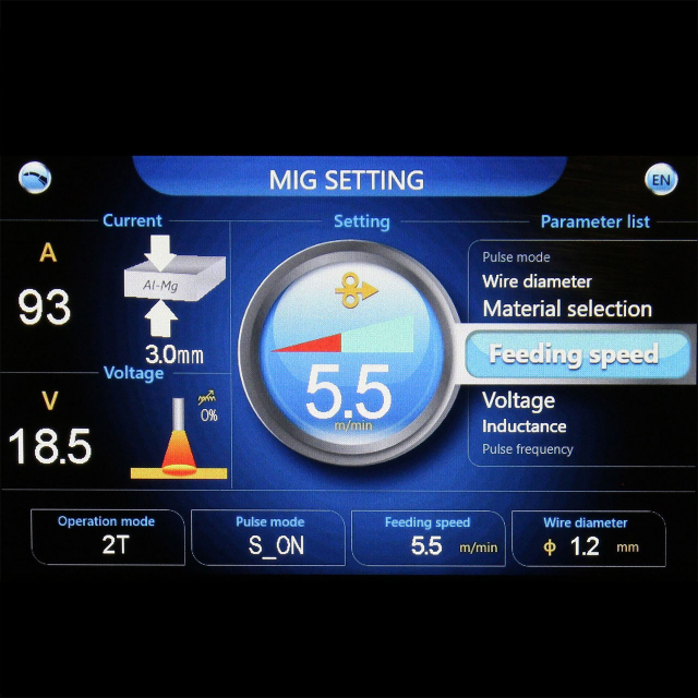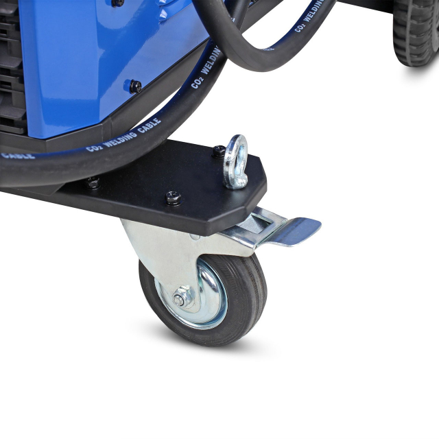 Provides help in SYNERGY mode to set welding parameters based on user selected material type, thickness and weld wire diameter. Can use single or double pulse current in MIG or MAG mode. Precise controls for current, voltage, wire feed speed and inductance. Portable and increased mobility thanks to four wheels and space for a full size gas bottle.