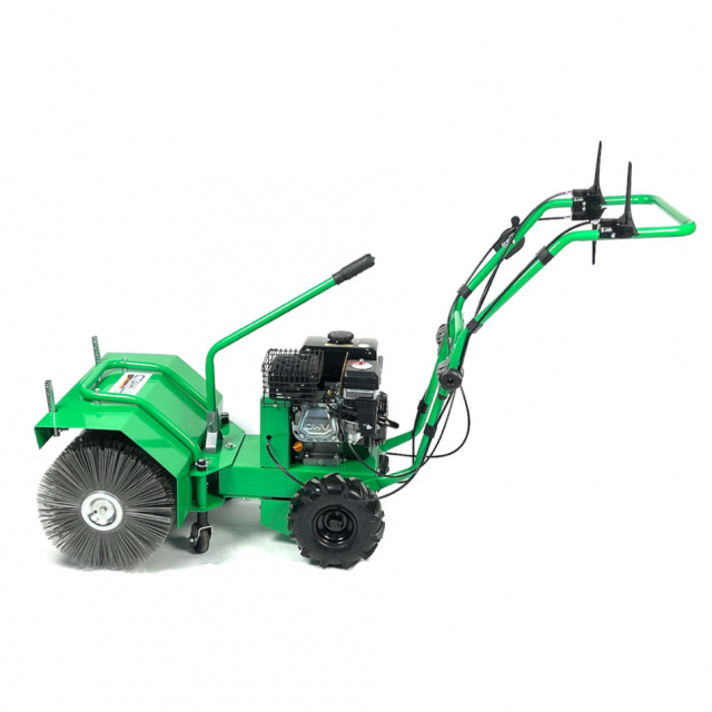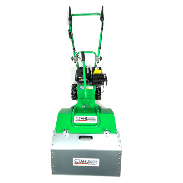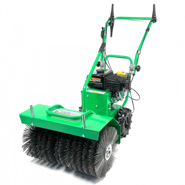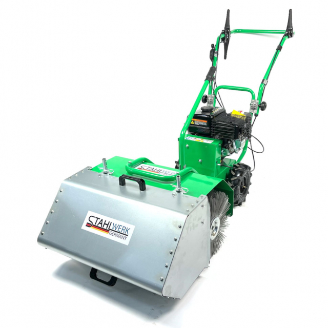 De Stahlwerk Germany K6oo veegmachine is een compacte en gebruiksvriendelijke veger die het hele jaar door inzetbaar is. Deze heeft grote wielen en 3 versnellingen. Het is de ideale machine voor klussen rondom het huis, (school)pleinen en parkeerplaatsen en alle andere plekken waar u snel en efficient wilt vegen. Je kunt de machine gebruiken als veegmachine of als vuil ruim machine. Perfect voor het vegen van allerlei ondergronden zoals asfalt, beton of straatstenen. De machine is voorzien van een zwenkbare en in hoogte verstelbare borstel. De veegborstel bestaat uit 14 losse borstels welke elk individueel te vervangen zijn. Ook is de duwboom in hoogte verstelbaar. De powerline 4,5 kw benzine motor zorgt ervoor dat u multifunctioneel aan de slag kunt.
