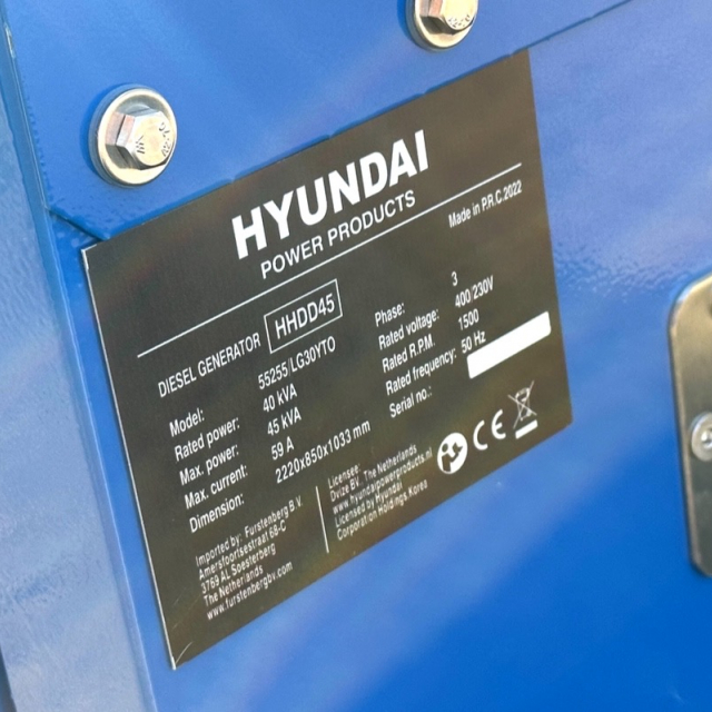 HYUNDAI HHDD45 45KVA HEAVY DUTY DIESEL GENERATOR 1500RPM