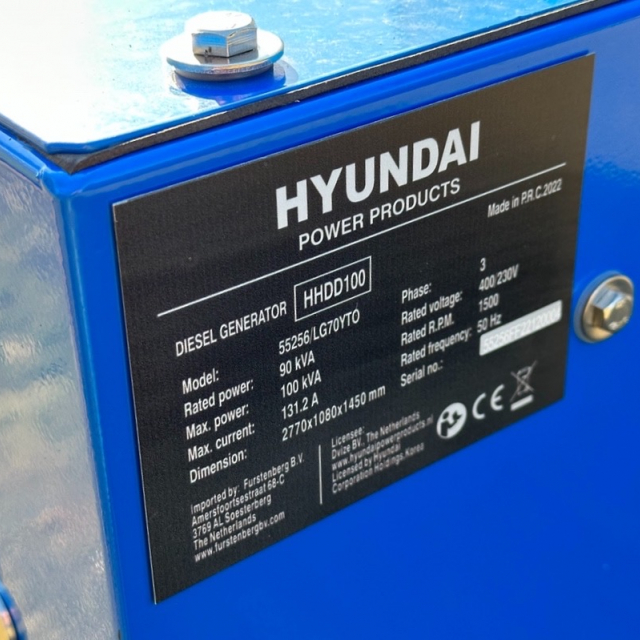 HYUNDAI HHDD100 100KVA HEAVY DUTY DIESEL GENERATOR 1500RPM
