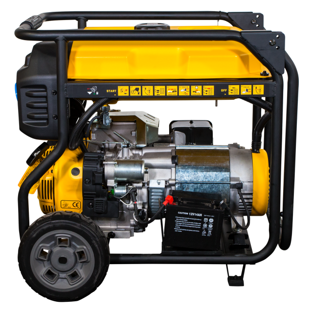The device has an electric starter, which makes commissioning simple and convenient. The robust housing protects the device against external influences and is ideal for use in harsh environments. The integrated wheels and handle make transportation easy and uncomplicated.