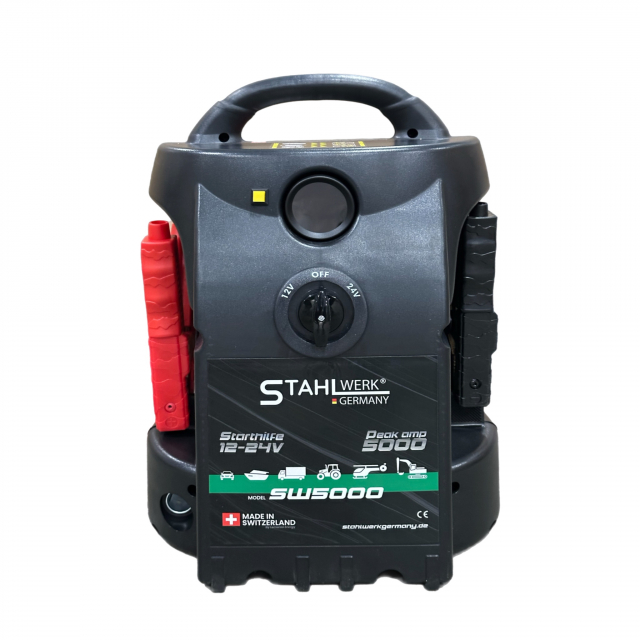De Stahlwerk Germany SW5000 Accubooster is een hoogwaardige oplossing voor het snel en betrouwbaar starten van voertuigen en machines met zowel 12V als 24V accu’s. Met een indrukwekkende piekstroom van 5000 ampère staat deze accubooster garant voor moeiteloos starten, zelfs onder de meest veeleisende omstandigheden. Of het nu gaat om auto’s, boten, vrachtwagens, tractoren, helikopters of graafmachines, deze accubooster biedt de benodigde kracht en betrouwbaarheid om elk voertuig of machine snel weer operationeel te maken.