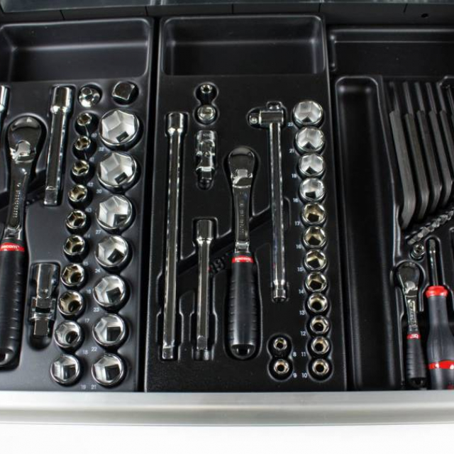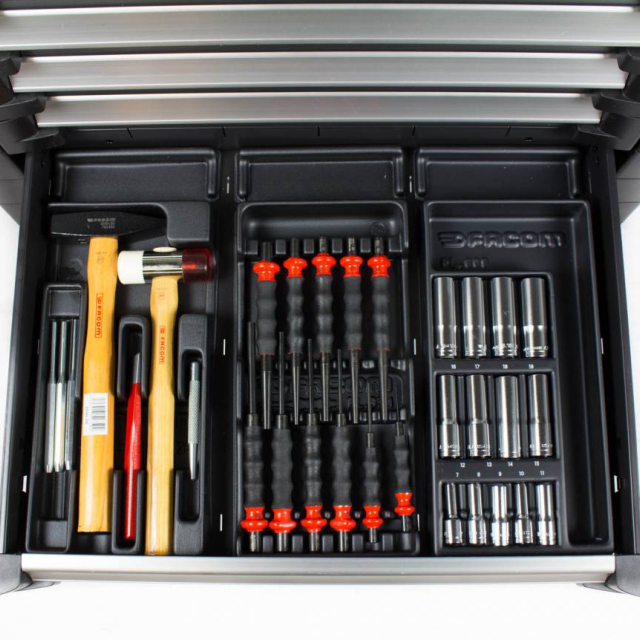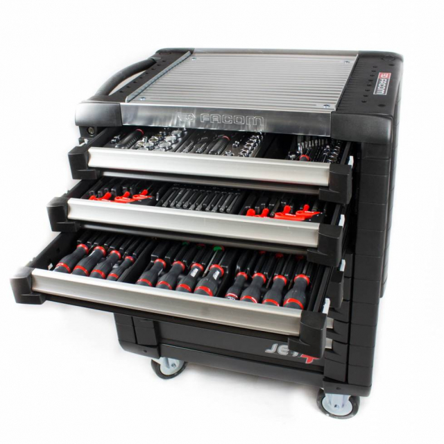 Deze zwarte Facom gereedschapwagen is gevuld met maar liefst 22-gereedschapsmodules. De wagen heeft een aluminium werkblad en kogelgelagerde laden. Deze gereedschapwagen is voorzien van levenslange Facom fabrieksgarantie en biedt de beste kwaliteit.