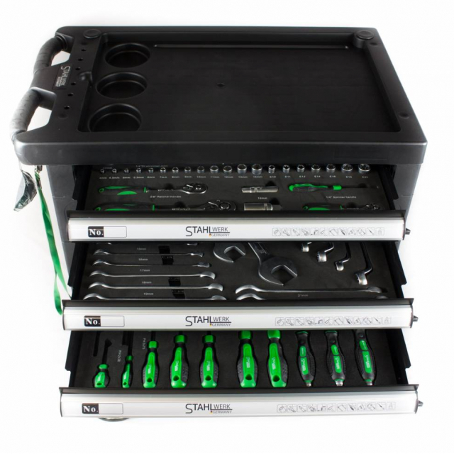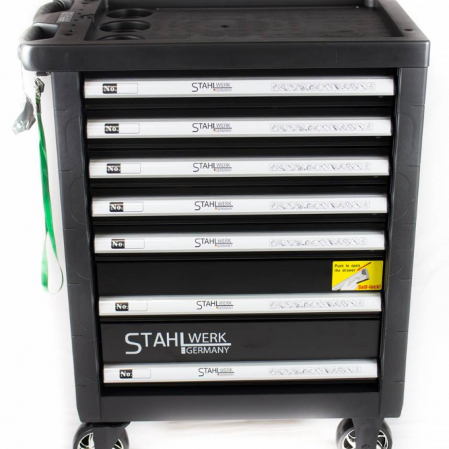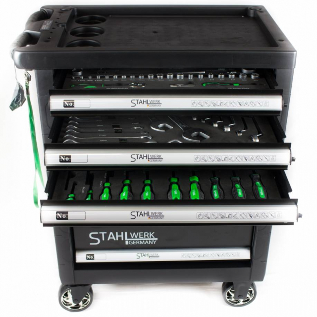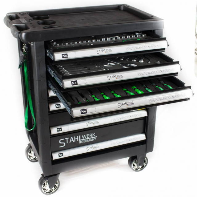 Deze prachtige gereedschapswagen van degelijke duitse kwaliteit is geschikt voor de veeleisende professional en samengesteld door een team met kennis van zaken. De wagen is voorzien van Foam inlays en gevuld met kwaliteitsgereedschap.
