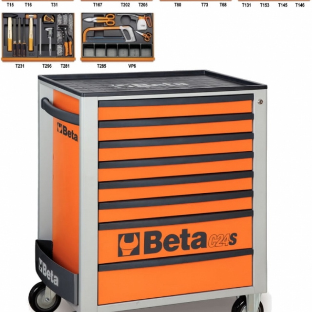 Beta Tools C24S / 8 O + 5904VI / 3T Tool trolley | Filled | 8 Loading Orange 142 Piece Set